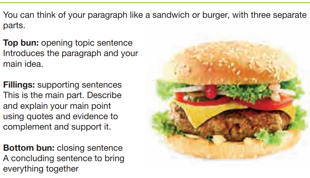 The P-E-E chain stands for Point-Evidence-Explain. This is the order in which you should organise the information in each paragraph that you write.